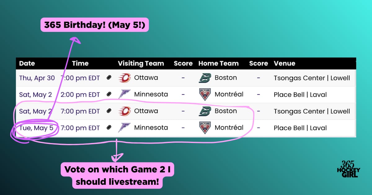 I briefly discussed the main storylines for each team in the playoffs this year. I will release a full PWHL semifinals guide on Wednesday! See you then!