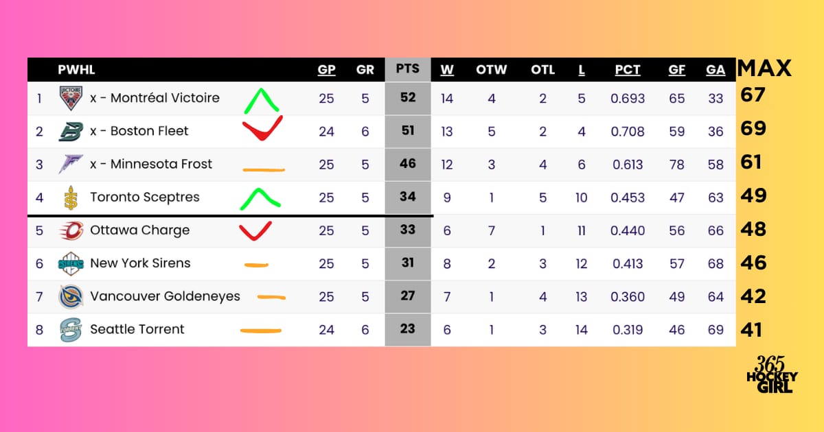 Top 🔝: New York Sirens. The Sirens got some much-needed wins this week. Despite both of them being OT / shootout wins, winning at Madison Square Garden is such a huge win and they are still very much in this playoff race. 🙏